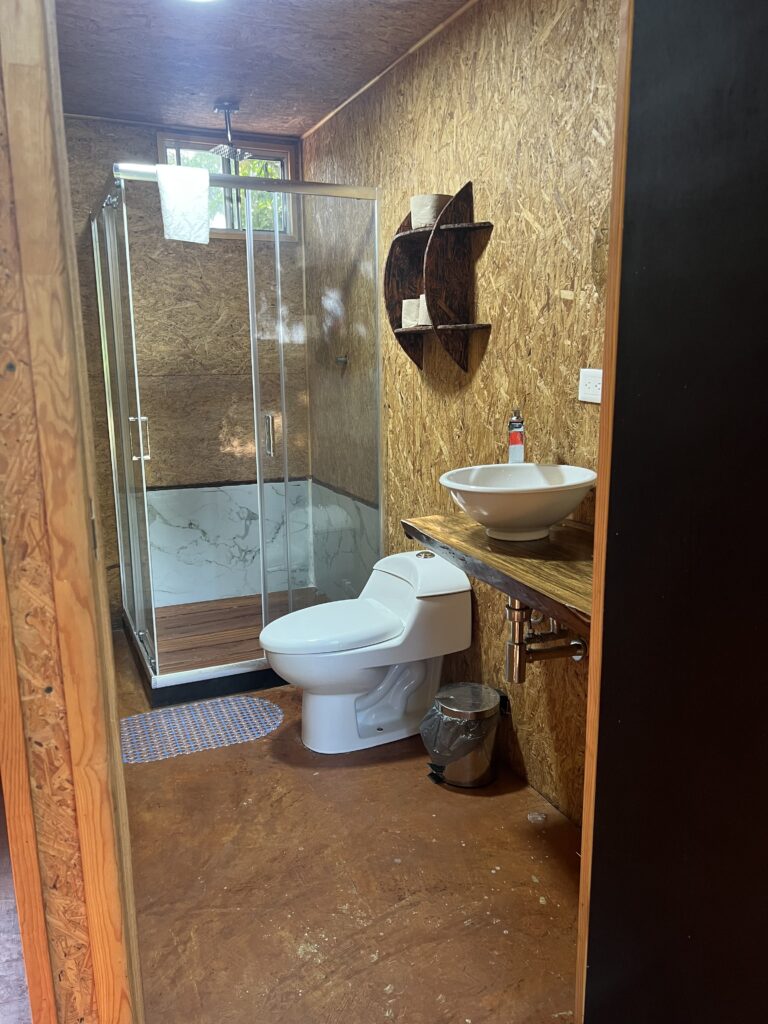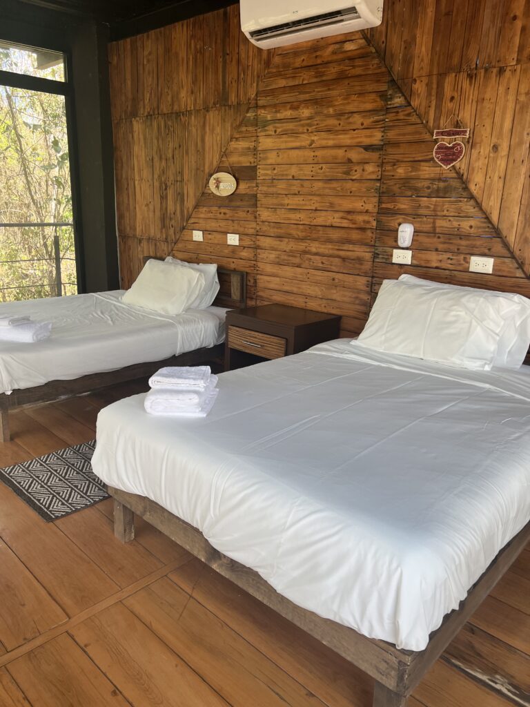 - Dům v džungli: Prostorný pokoj pro dvě osoby s vlastní koupelnou, klimatizací, ventilátory a teplou vodou.